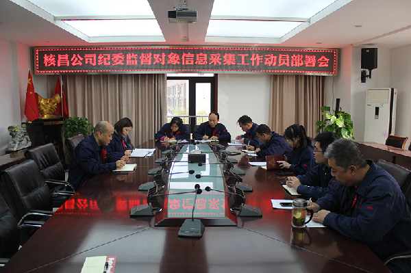 11月18日下午,核昌公司紀委組織各黨支部書記,人力資源部、黨委工作部相關人員在公司小會議室召開監督對象信息采集動員部署會。會議由紀委書記任中賢主持。