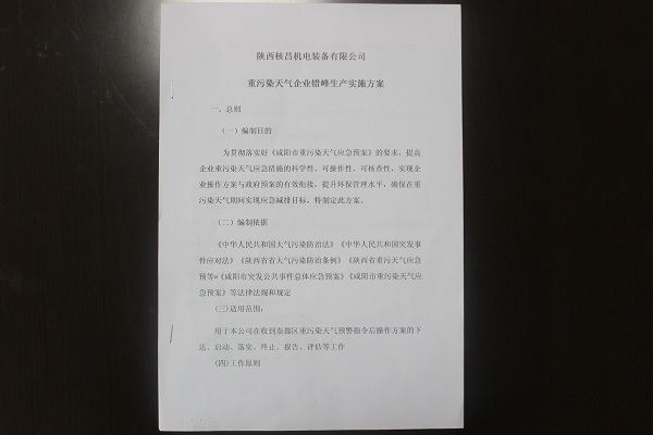 我公司屬機(jī)電一體化、機(jī)械加工等產(chǎn)業(yè)的生產(chǎn)及經(jīng)營活動, 現(xiàn)階段主要的危險廢物包括:油漆桶、廢機(jī)油、乳化液、噴漆、噴砂。油漆桶、廢機(jī)油、乳化液等危險廢物處置由陜西中環(huán)新環(huán)保有限公司承包處理;噴漆、噴砂房等由公司投入大量資金進(jìn)行升級改造,經(jīng)西安圓方環(huán)境衛(wèi)生檢測技術(shù)有限公司監(jiān)測,所排廢氣均達(dá)到國家標(biāo)準(zhǔn)。同時制定《重污染天應(yīng)急預(yù)案》、《重污染天氣企業(yè)錯峰生產(chǎn)實(shí)施方案》,為改善環(huán)境、大氣質(zhì)量作出積極的貢獻(xiàn)。