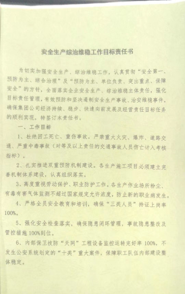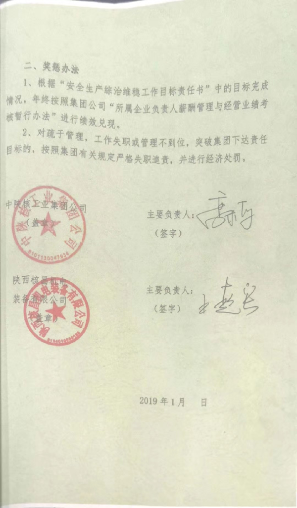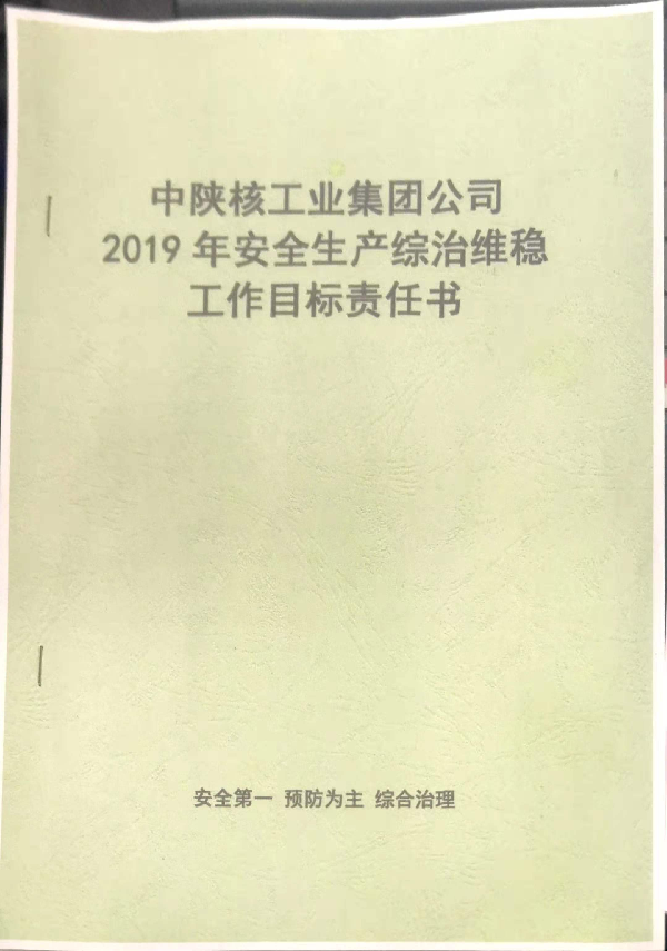 中陜核工業(yè)集團(tuán)公司2019年安全生產(chǎn)綜治維穩(wěn)工作目標(biāo)責(zé)任書(shū)