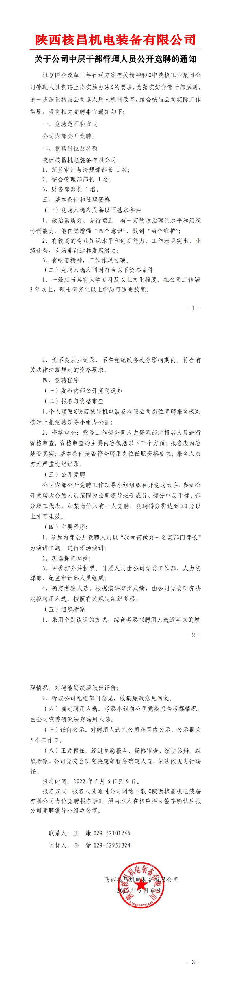陜西核昌機(jī)電裝備有限公司內(nèi)部公開競聘報名表
